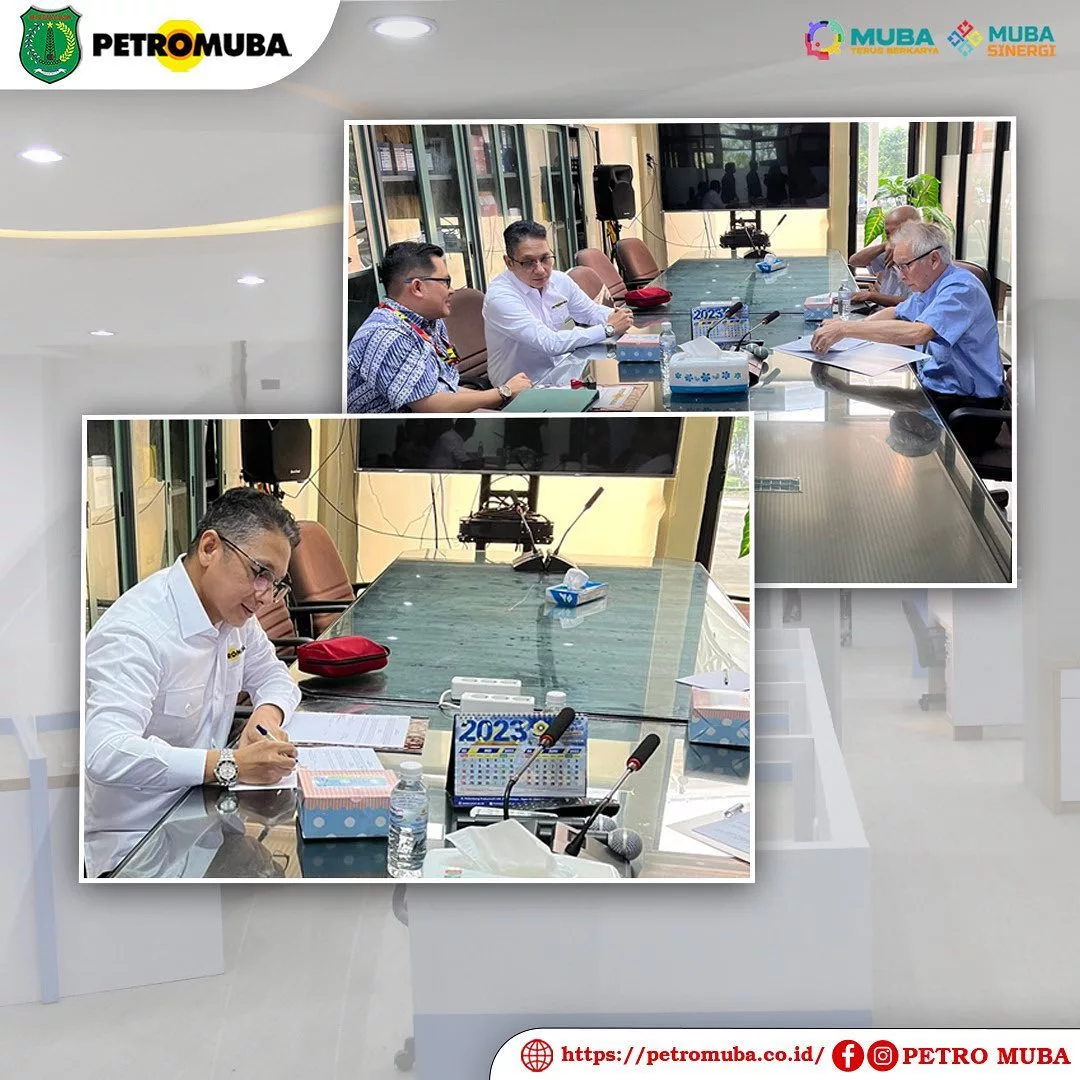 Khadafi, S.E, Direktur Utama PT PETRO MUBA (Perseroda) didampingi Sapta Yuliandri, S.T, Sekretaris Perusahaan dan Ahmad Fikri, Manajer Bisnis Development, melakukan penandatanganan PKS (Pembuatan Feasibility Study) rencana pembangunan Pabrik Minyak Goreng Mini, antara PT Petro Muba dengan Prof. Dr. Zulkifli Dahlan, M. Si., DEA., Badan Pengelola Usaha (BPU) Universitas Sriwijaya. Kegiatan ini berlangsung di, Palembang 29 Mei 2023.
